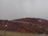 So anyway,last Saturday we went to Logan city,where the risky canyon is.It is risky highway going there especially if you're traveling bad weather,snowy,heavy rain & foggy.You can hardly see the road when you're driving,plus a lot of animals from high mountains will try to cross the road like deers,skunks,rabbits,& etc.Hubby always tells me to be very careful on that road because a lot of things may happen while i'm driving & it may scare me & affect my driving that will cause to an accident,also the fog,it'll be hard to see ahead of me & the flying chunks of ice snow too which is scary coz the speed limit on that road is 70 miles per hour.It is offly fast really,that's why as much as possible hubby will drive every time we'll go to Logan.It was too bad coz i am suppose to go that canyon before the winter so i can see those beautiful bushes that the leaves turned into orange & red colors.But i still got some pictures of them even though it was snowing real hard when i took these photos.